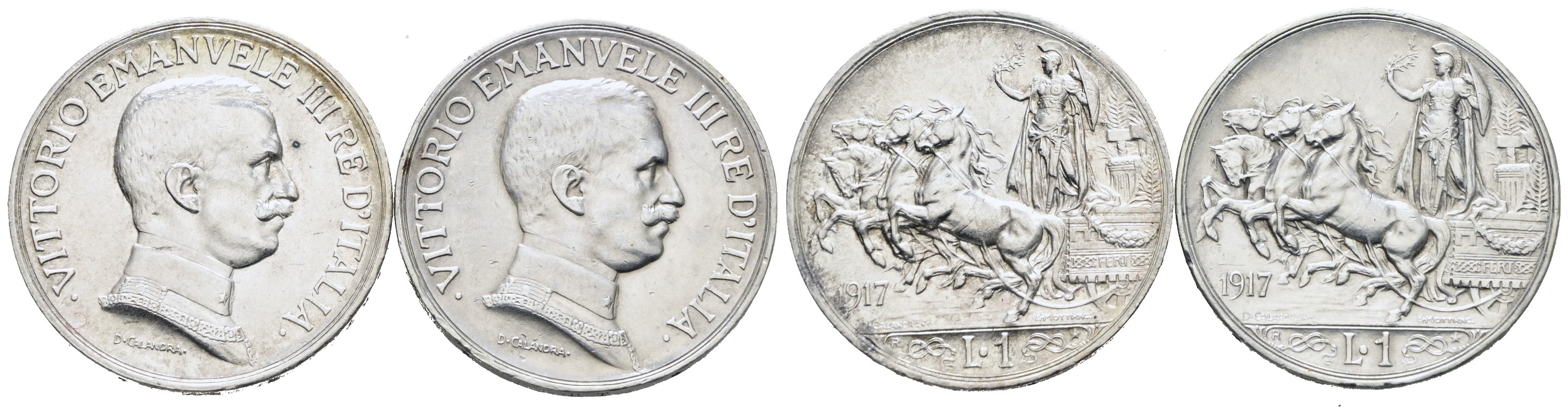 REGNO D'ITALIA. Vittorio Emanuele III (1900-1943). Lotto di 2 monete da 1 lira 1917 "Quadriga briosa". Ag; Gig. 139; Conservazioni varie