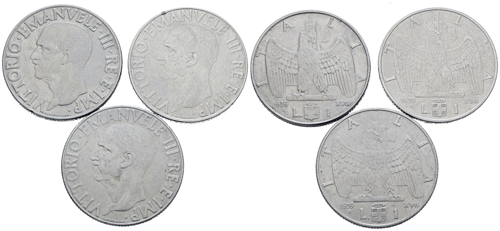 REGNO D'ITALIA. Vittorio Emanuele III (1900-1943). Lotto di 3 monete da 1 lira "Impero". Ac; Date e conservazioni varie