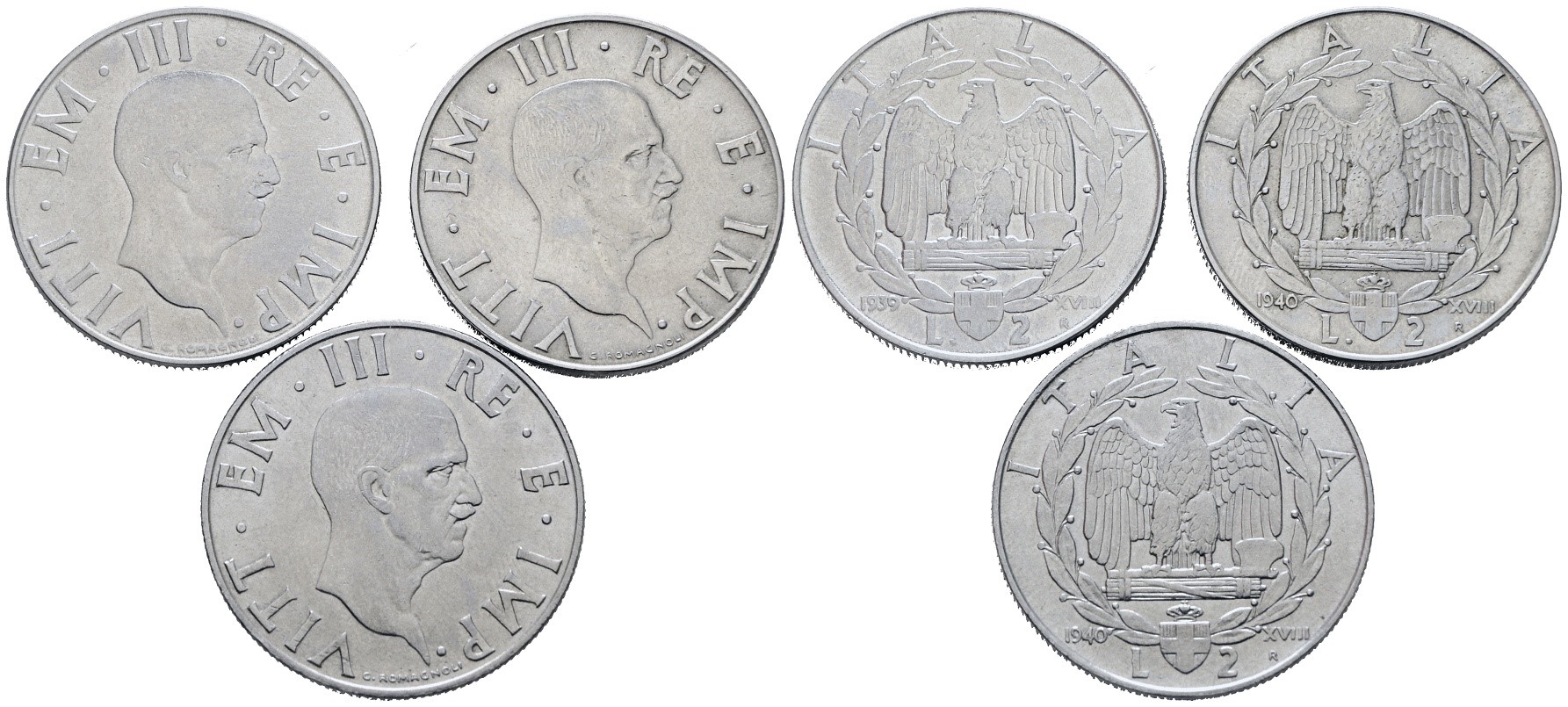 REGNO D'ITALIA. Vittorio Emanuele III (1900-1943). Lotto di 3 monete da 2 lire "Impero". Ac; Date e conservazioni varie
