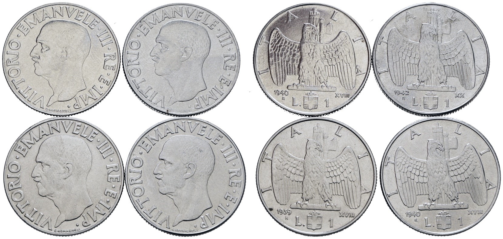REGNO D'ITALIA. Vittorio Emanuele III (1900-1943). Lotto di 4 monete da 1 lira "Impero". Ac; Date e conservazioni varie