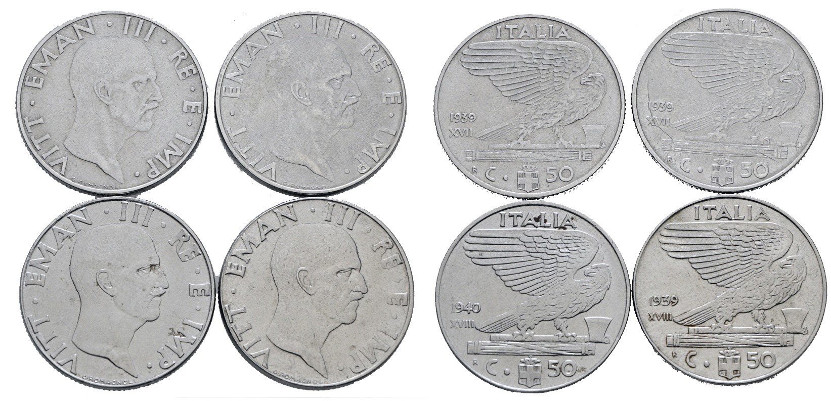 REGNO D'ITALIA. Vittorio Emanuele III (1900-1943). Lotto di 4 monete da 50 centesimi "Impero". Ac; Date e conservazioni varie