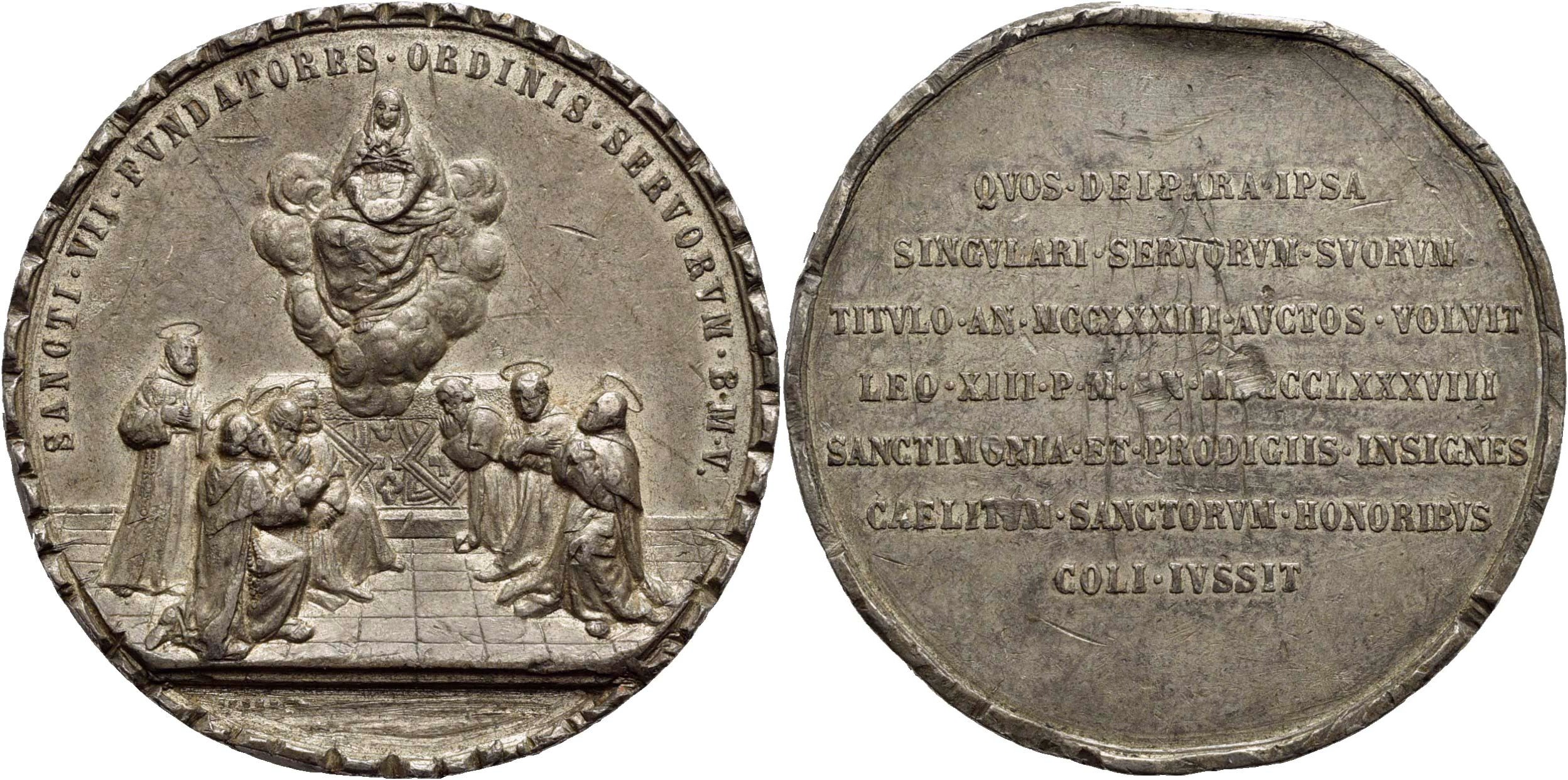 RELIGIOSE - Medaglia - 1888 - Canonizzazione dei Servi di Maria Opus: Johnson Ø: 50 mm. - (AE arg. g. 50,5) R Mod. 158. SPL-FDC