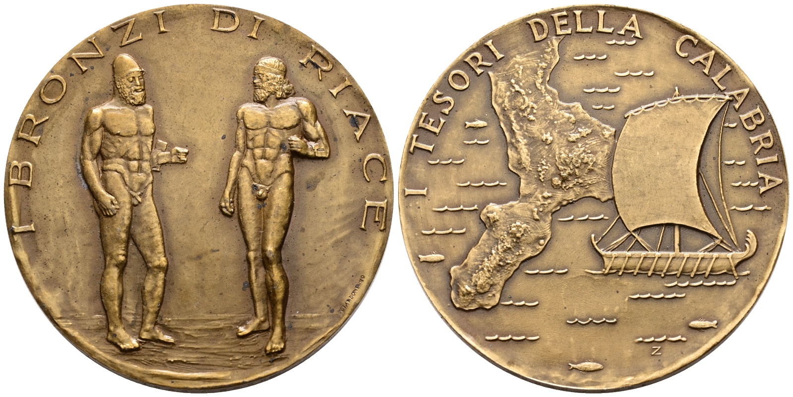 REPUBBLICA ITALIANA. IPZS. Medaglia 1981. Tesori della Calabria, i bronzi di Riace. Ae; 55gr; 50mm. FDC