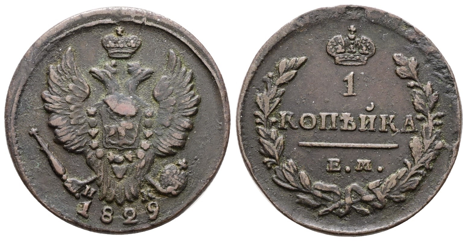 RUSSIA. EKATERININBURG. Nicola I (1825-1855). 2 copechi 1829. Cu; 6,83gr; C 117; BB+
