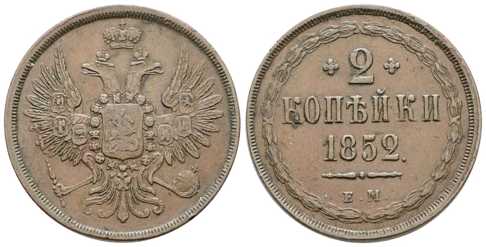 RUSSIA. EKATERININBURG. Nicola I (1825-1855). 2 copechi 1852. Cu; 10,4gr; C 150; BB/SPL