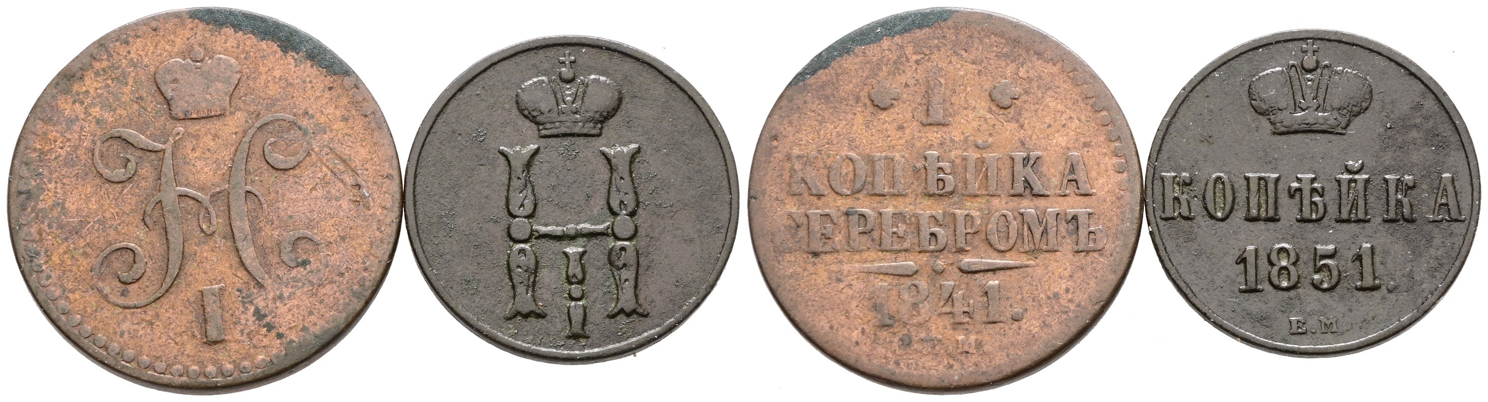 RUSSIA. Nicola I (1825-1855). Lotto di 2 monete: 1 copeco 1841; 1 copeco 1851. Cu; Conservazioni varie