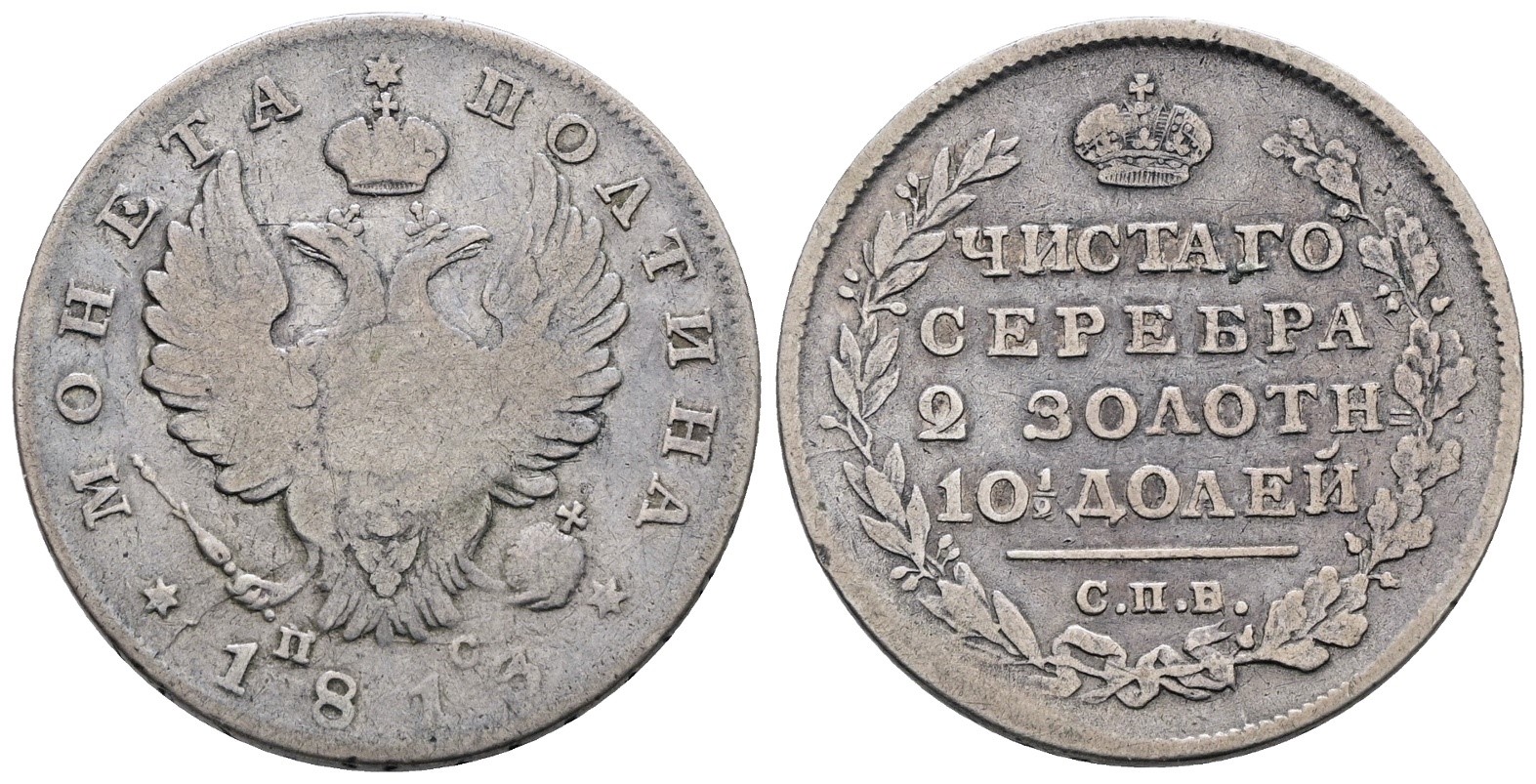 RUSSIA. SAN PIETROBURGO. Alessandro I (1802-1825). Rublo 1813. Ag; 20,43gr; C 130; MB+