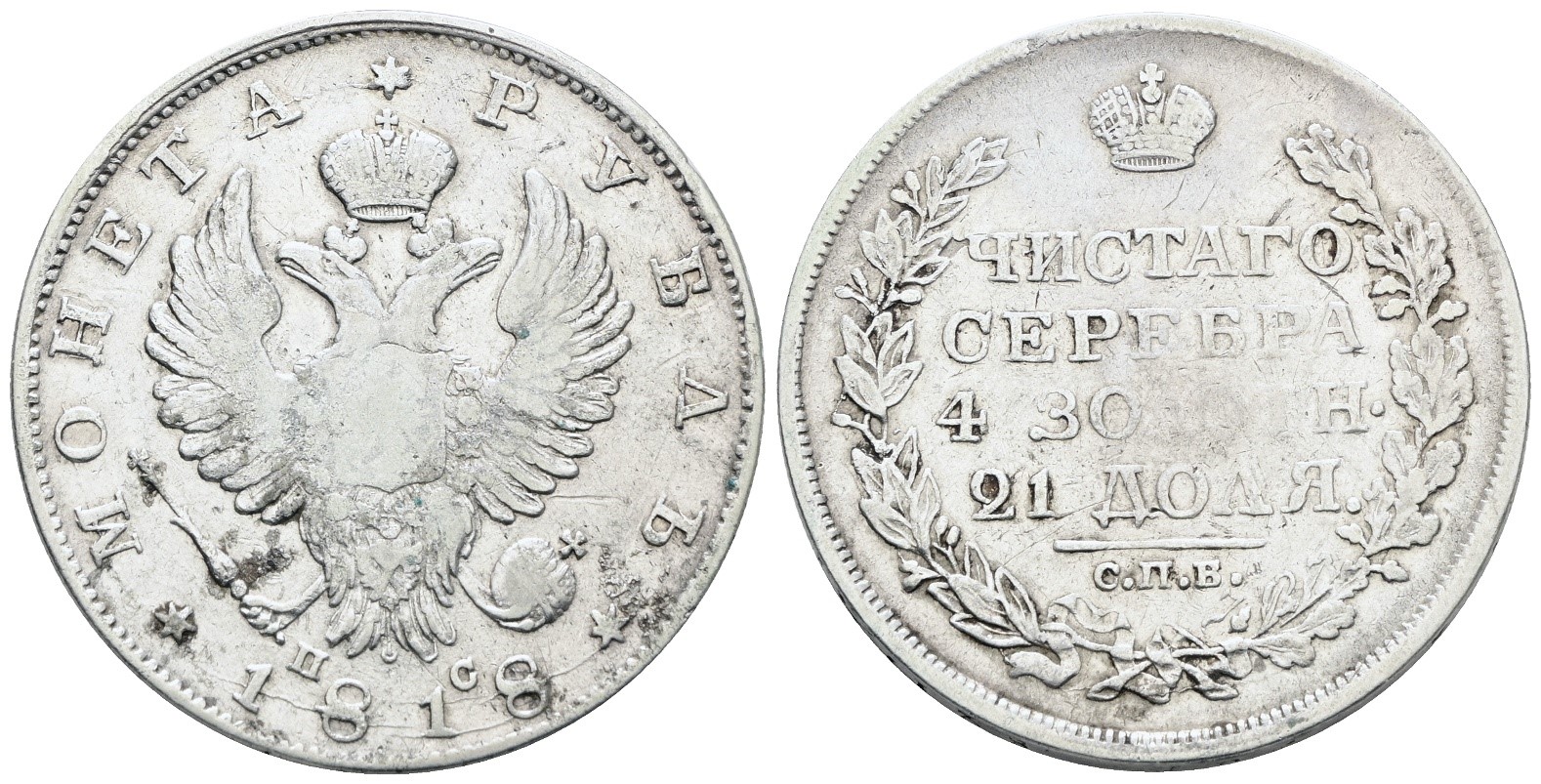 RUSSIA. SAN PIETROBURGO. Alessandro I (1802-1825). Rublo 1818. Ag; 20,43gr; C 130; Q.BB