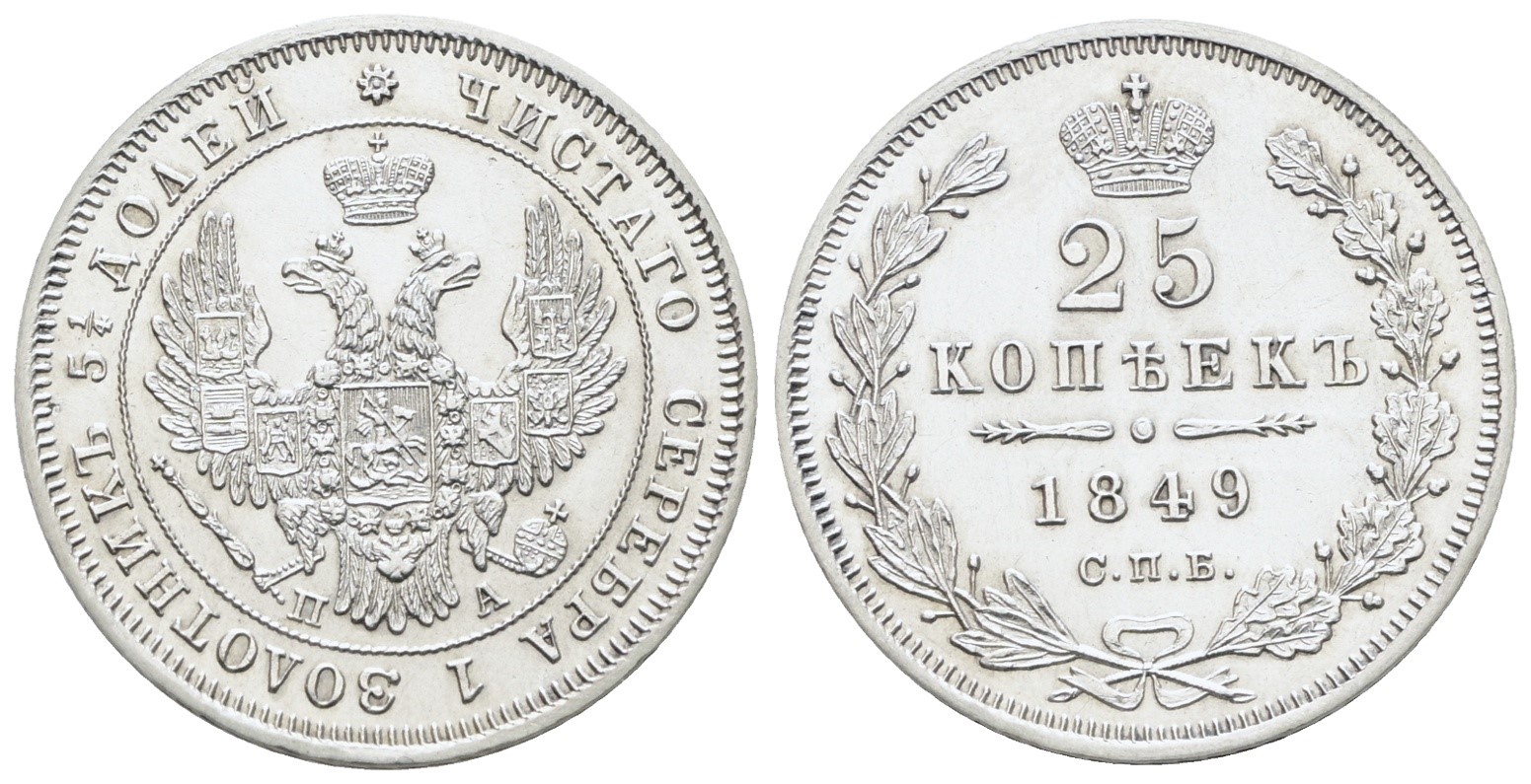 RUSSIA. SAN PIETROBURGO. Nicola I (1825-1855). 25 copechi 1849. Ag; 5,18gr; C 166; SPL+