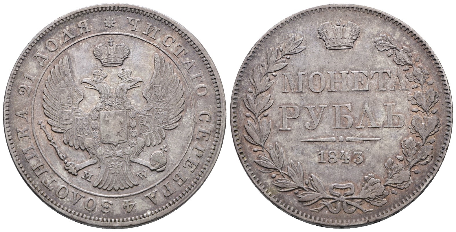 RUSSIA. VARSAVIA. Nicola I (1825-1855). Rublo 1843 (sigle M W). Ag; 20,43gr; C 168; Raro; Q.SPL