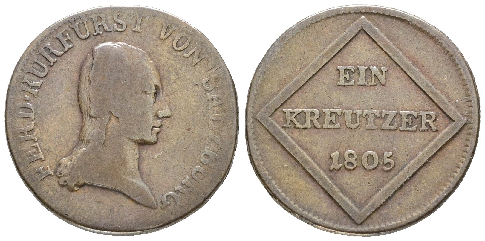 SALISBURGO. Ferdinando III di Lorena (1803-1806). 1 kreuzer 1805. Cu; KM 491; 5,7gr; MB