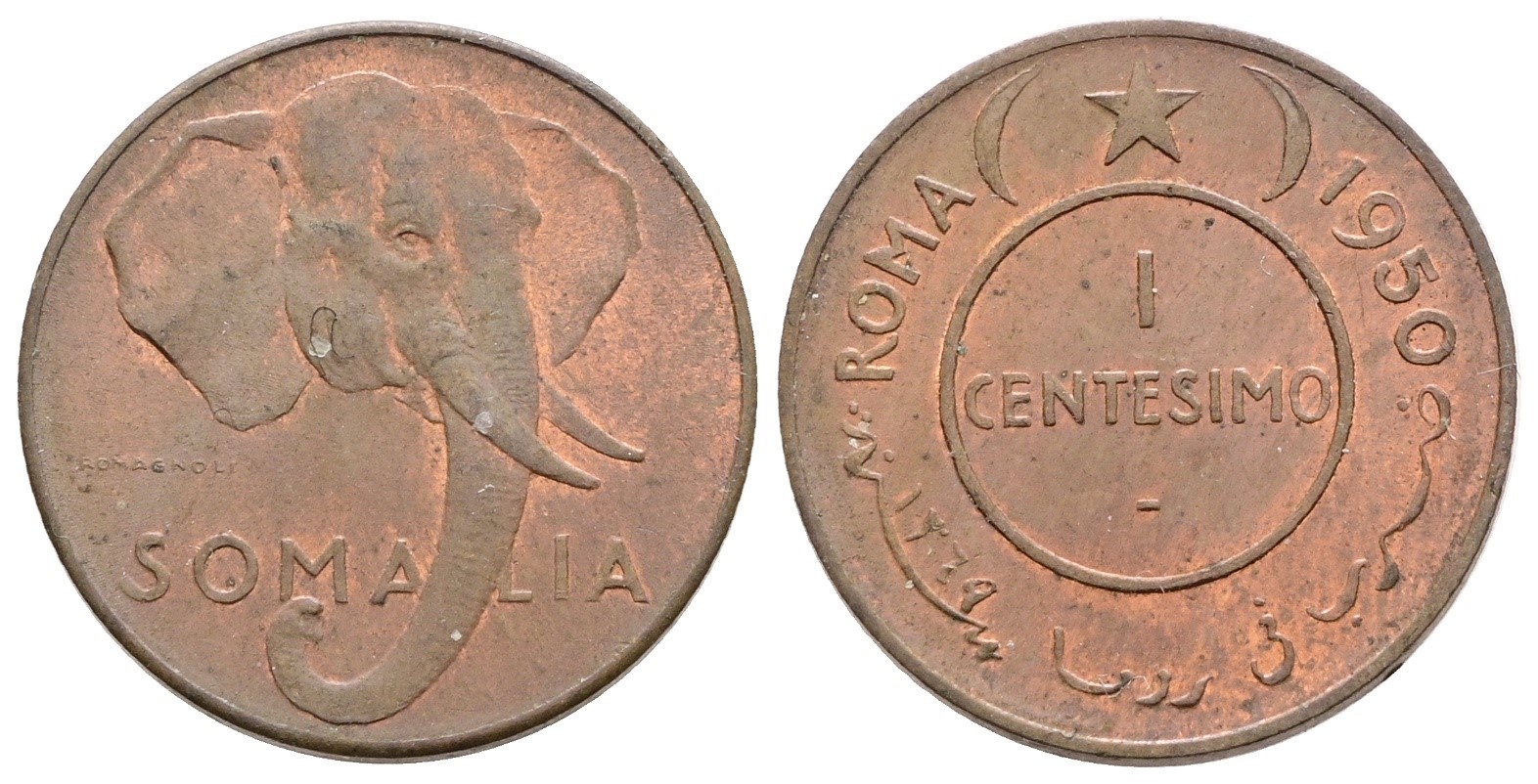 SOMALIA. A.F.I.S. (1950-1960). 1 centesimo 1950. Cu. 2,95gr; Gig.5. FDC rame rosso