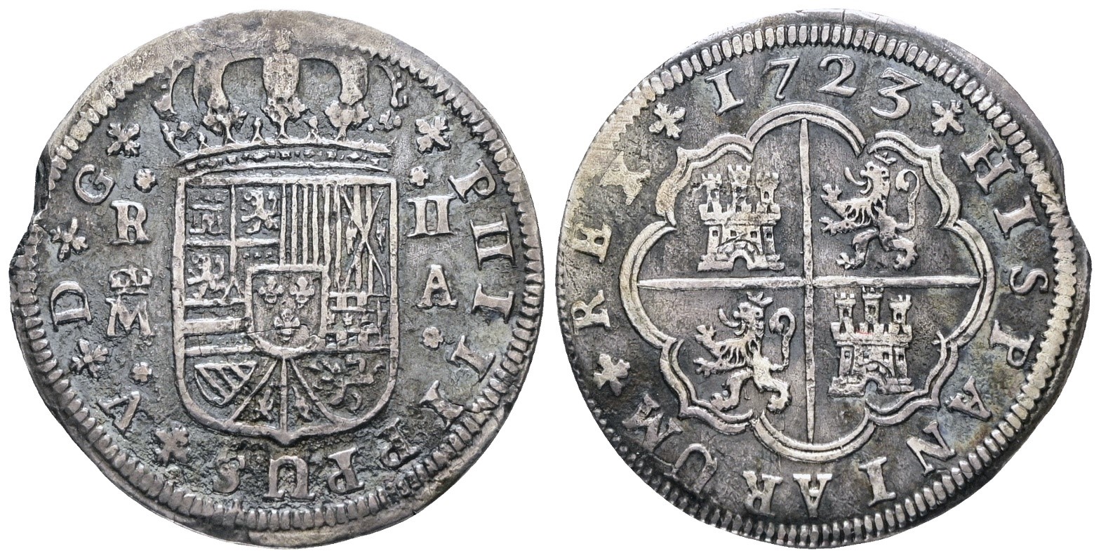 SPAGNA. MADRID. Filippo V di Borbone (1700-1746). 2 reales 1725. Ag; 6gr; KM 296; BB