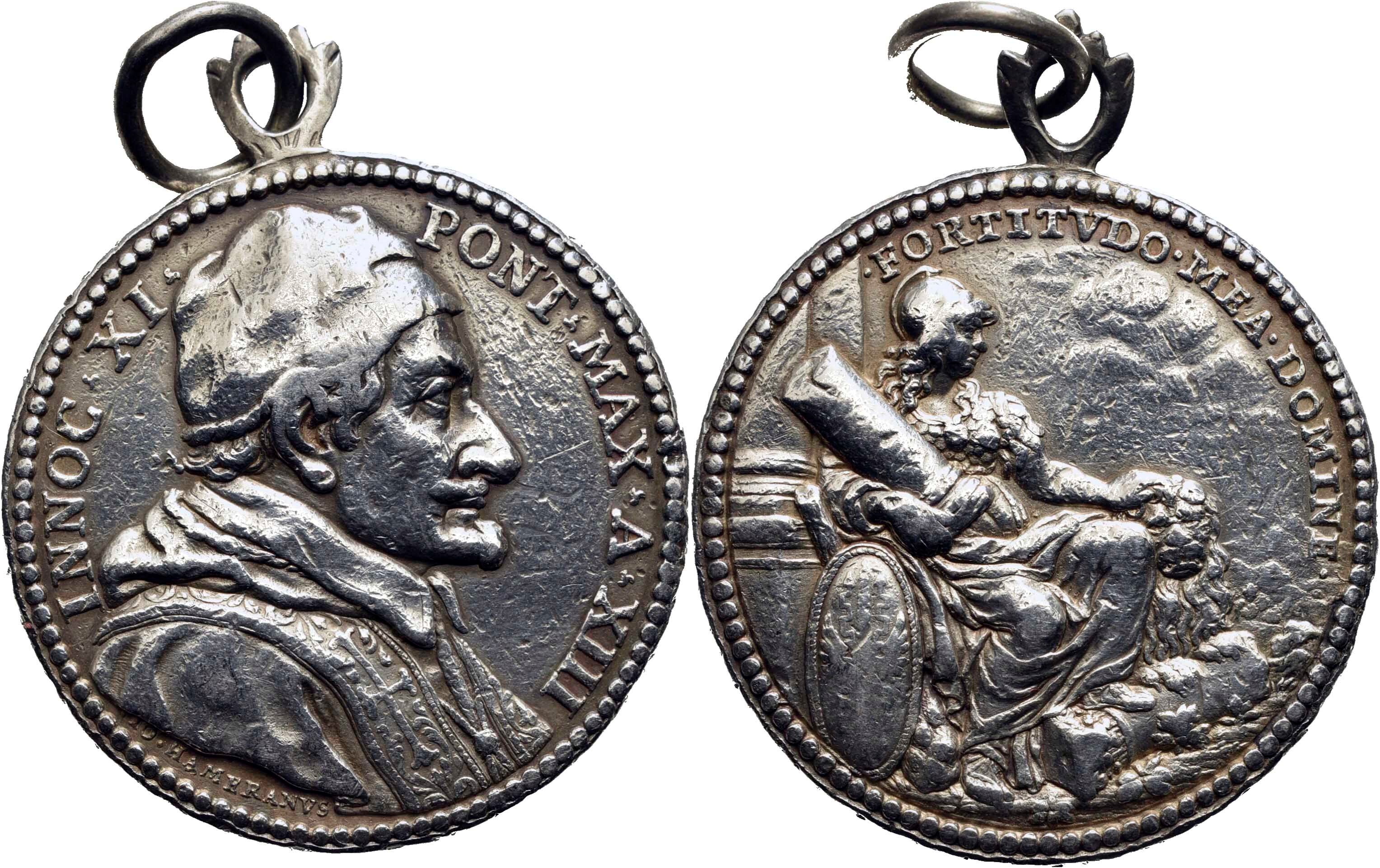 STATO PONTIFICIO. Innocenzo XI (1676-1689). Medaglia 1689 Op: Hamerani 37mm Ag 25g. RRR Bart. 689 Appiccagnolo. BB+