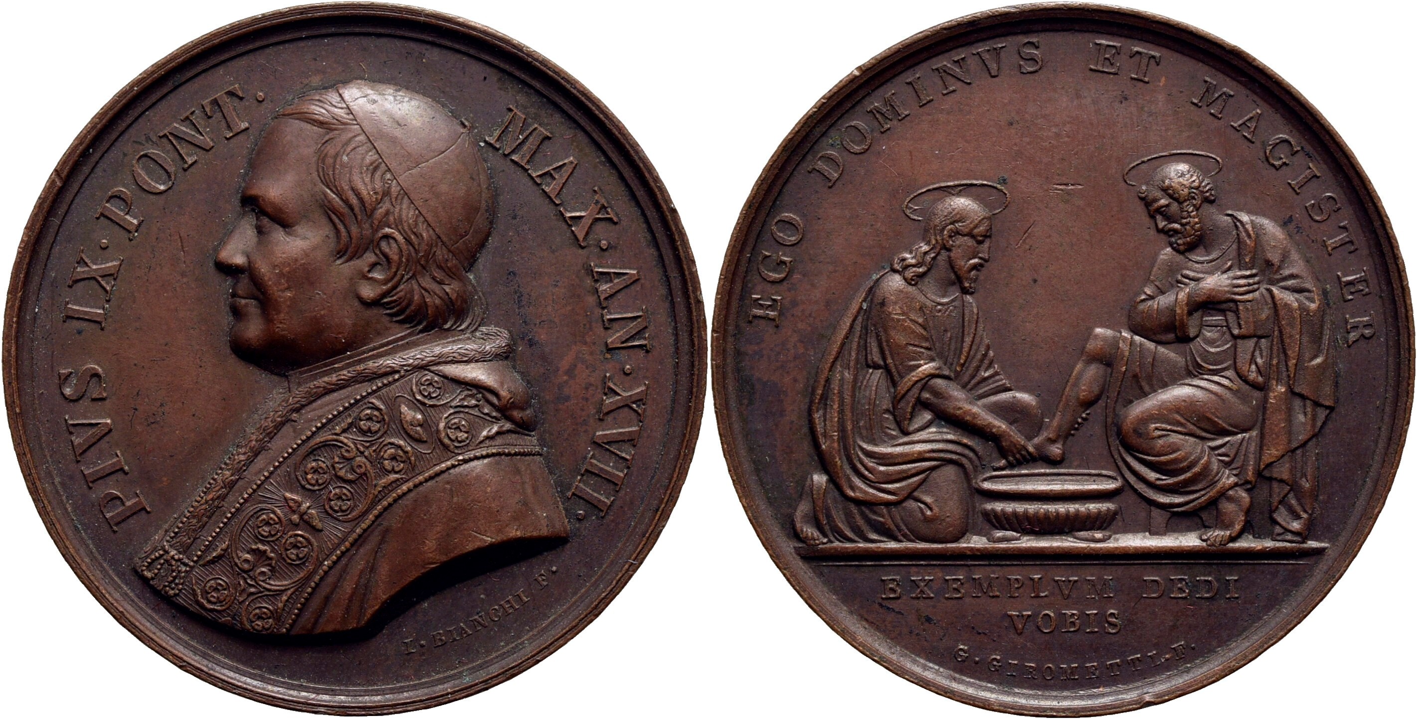 STATO PONTIFICIO. Pio IX (1846-1878). Medaglia - A. XVIII - La lavanda dei piedi Opus: Bianchi Ø: 32 mm. - AE. bello SPL