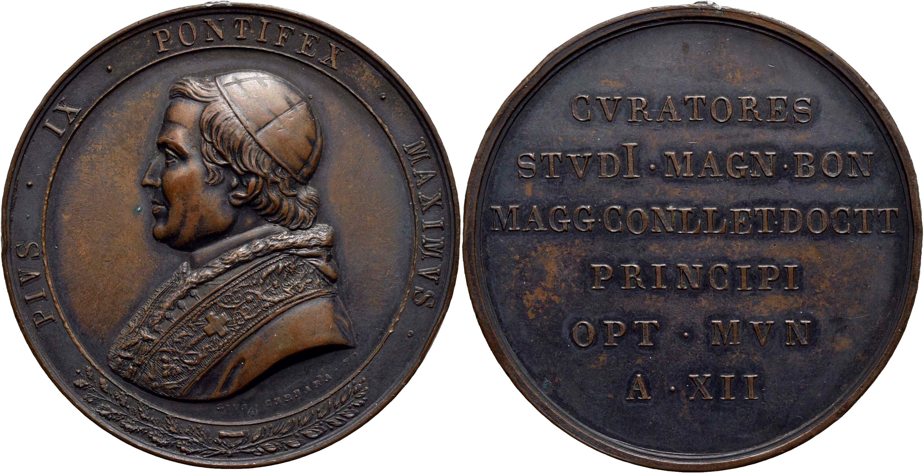 STATO PONTIFICIO. Pio IX (1846-1878). Medaglia A. XII - Viaggio nelle Provincie Università di Bologna Ø: 50 mm. - (AE g. 57) R SPL