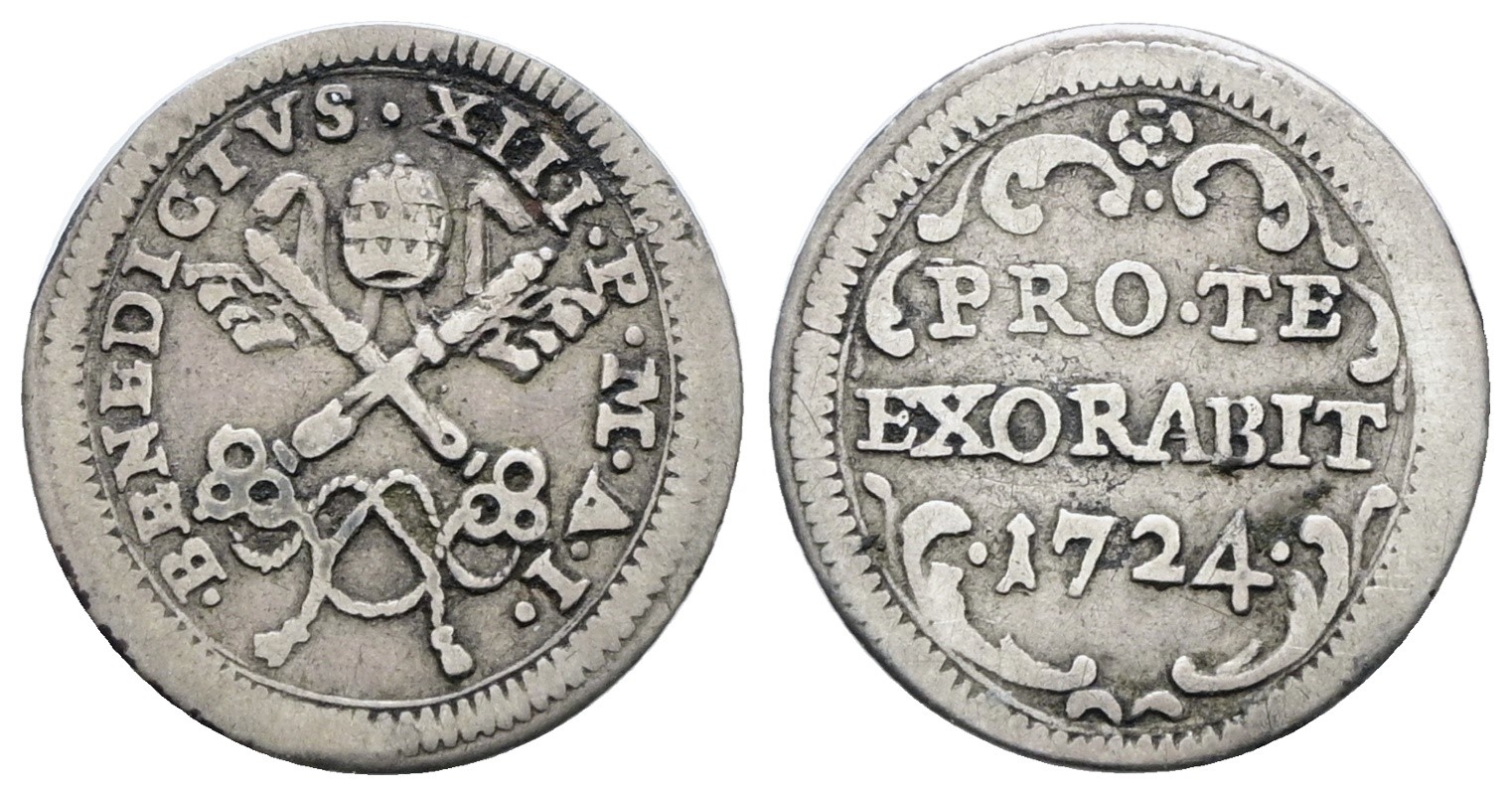 STATO PONTIFICIO. ROMA. Benedetto XIII (1724-1730). Mezzo grosso. Ag; 0,72gr; Munt.22; MIR 2450/1 ; Raro; BB+