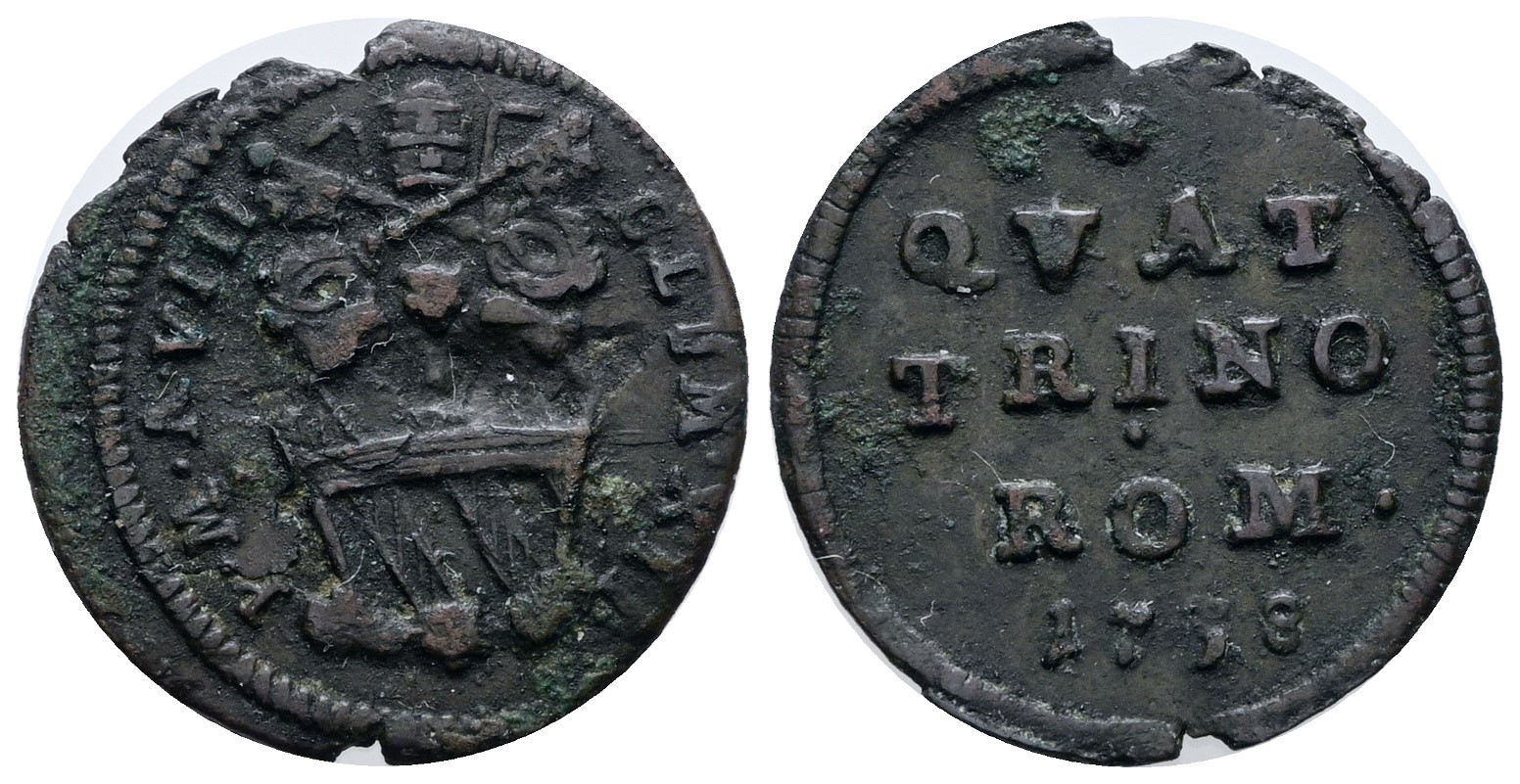 STATO PONTIFICIO. ROMA. Clemente XII (1730-1740). Quattrino 1738. Cu; 2,20gr; Munt.160; MIR 2534/1; NC; BB