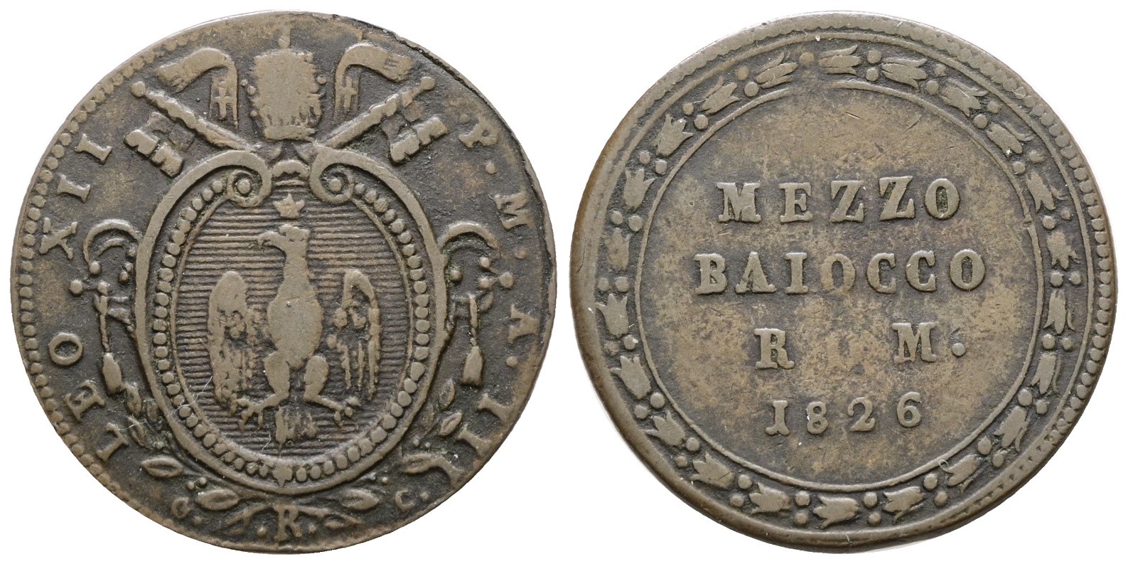 STATO PONTIFICIO. ROMA. Leone XII (1823-1829). Mezzo Baiocco 1826. Cu; 6,59gr; Gig. 13; BB