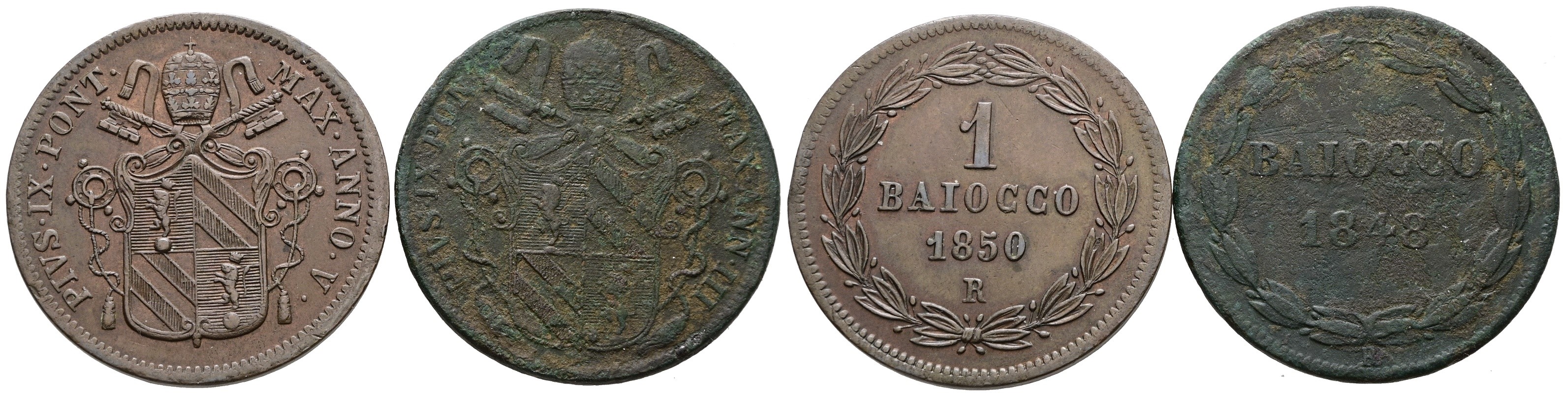 STATO PONTIFICIO. ROMA. Pio IX (1846-1870). Lotto di 2 monete da 1 baiocco 1850-1848. Cu; Conservazioni differenti