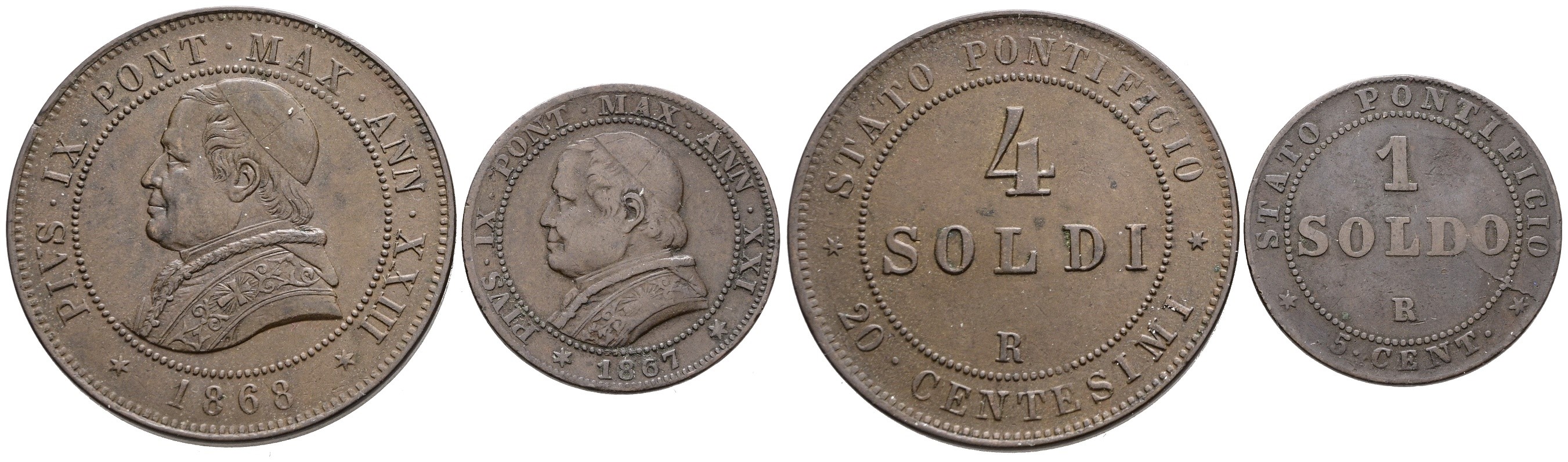 STATO PONTIFICIO. ROMA. Pio IX(1846-1870). Lotto di 2 monete da 4 soldi e 1 soldo. Cu; Anni e conservazioni differenti