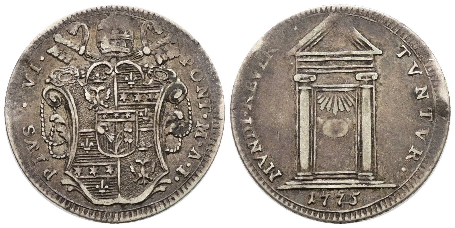 STATO PONTIFICIO. ROMA. Pio VI (1775-1799). Giulio 1775 "Giubileo". Ag; 2,64gr; Munt.49; MIR 2754/1; RR; BB