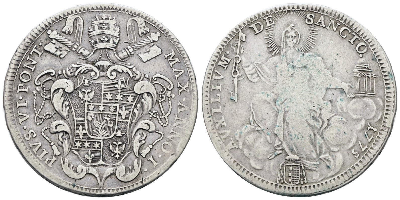 STATO PONTIFICIO. ROMA. Pio VI (1775-1799). Mezzo scudo 1775, anno I. Ag; 13gr; Munt.20; MIR 2765/1; BB