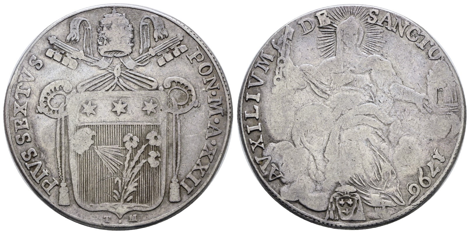 STATO PONTIFICIO. ROMA. Pio VI (1775-1799). Mezzo scudo 1796. Ag; 13gr; Munt.28; MIR 2767/7; RR; MB/BB