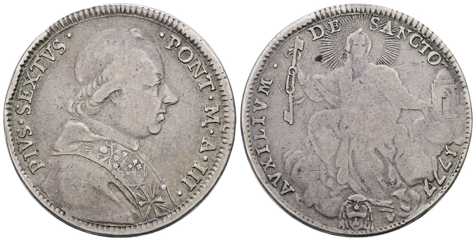 STATO PONTIFICIO. ROMA. Pio VI (1775-1799). Quinto di scudo, doppio giulio 1777, anno III. Ag; 5gr; Munt.38; MIR 2770/3; Q.BB