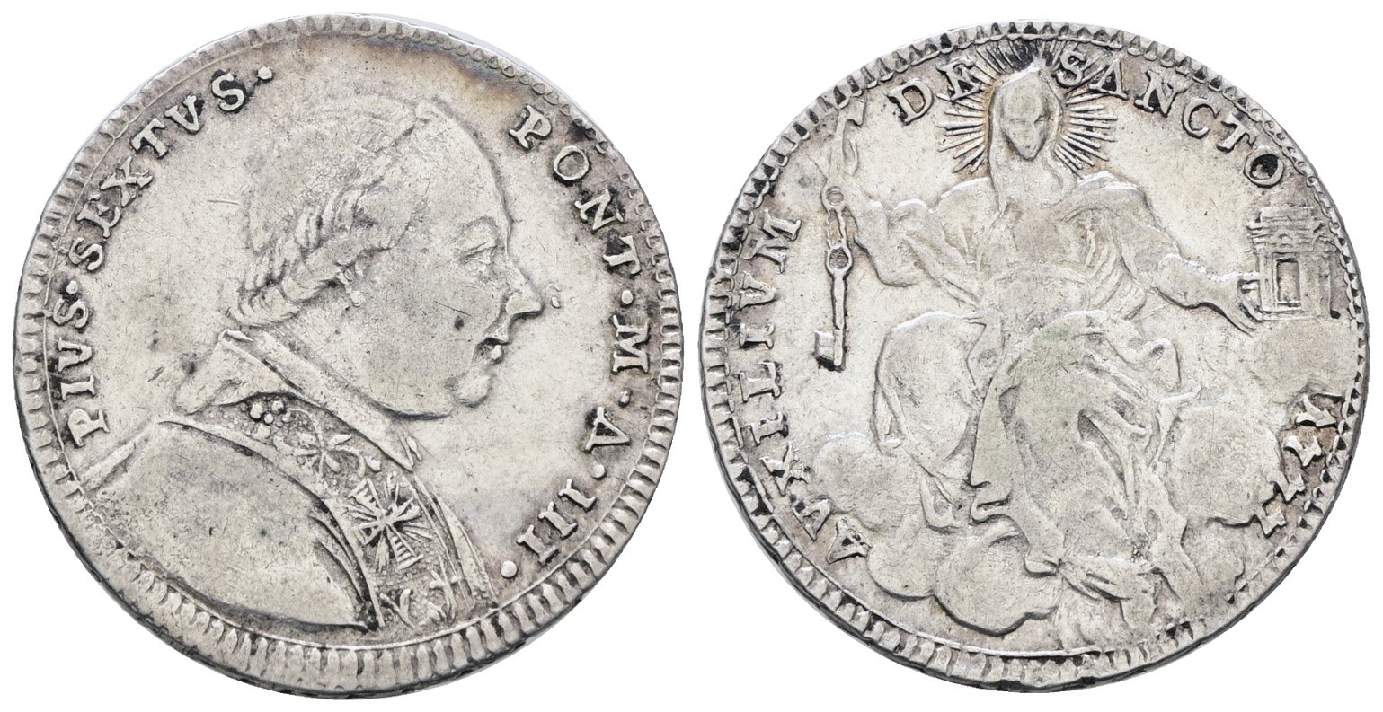 STATO PONTIFICIO. ROMA. Pio VI (1775-1799). Quinto di scudo, doppio giulio 1777, anno III. Ag; 5gr; Munt.38; MIR 2770/3; BB+