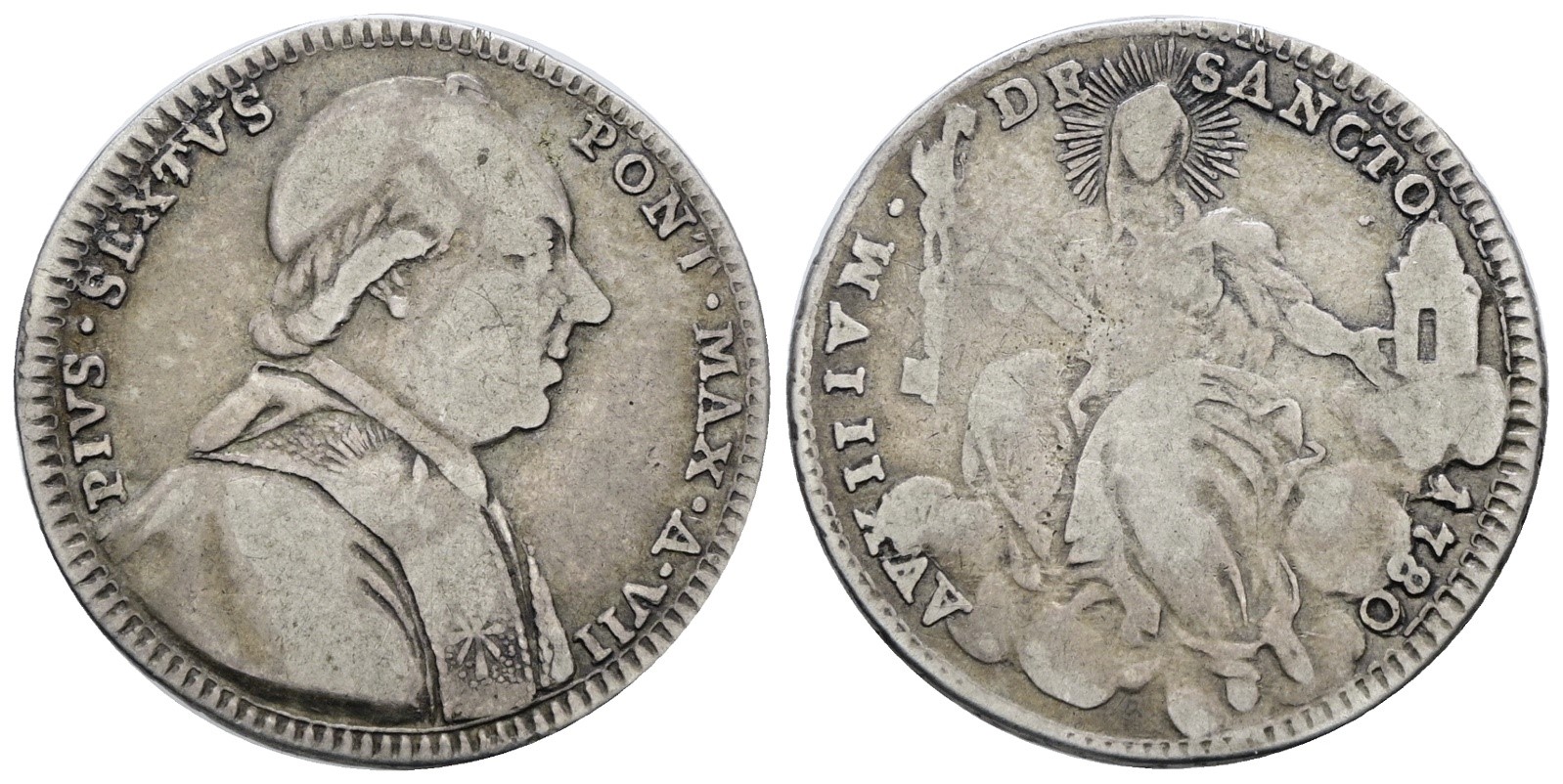STATO PONTIFICIO. ROMA. Pio VI (1775-1799). Quinto di scudo, doppio giulio 1780, anno VII. Ag; 5gr; Munt.39a; MIR 2770/13; Q.BB