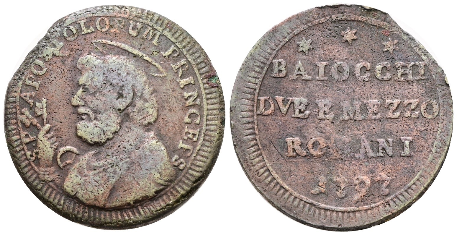 STATO PONTIFICIO. ROMA. Pio VI (1775-1799). Sampietrino da 2,5 baiocchi 1797. Cu; 16,9gr; Munt.99a; MIR 2797/3; NC; MB+