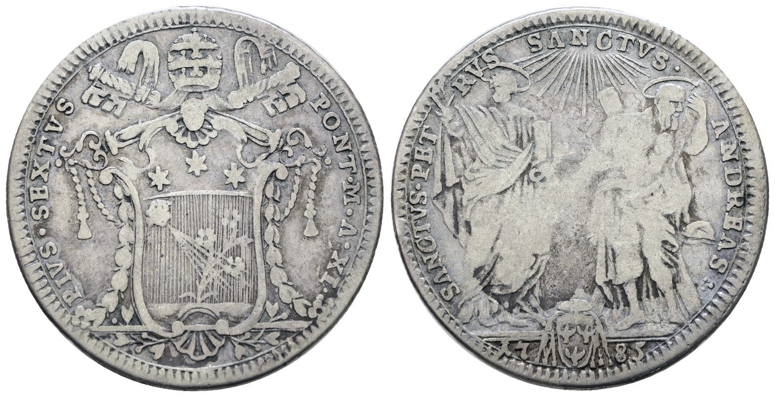 STATO PONTIFICIO. ROMA. Pio VI (1775-1799). Testone 1785. Ag; 7,5gr; Munt.29; MIR 2768/1; MB/BB