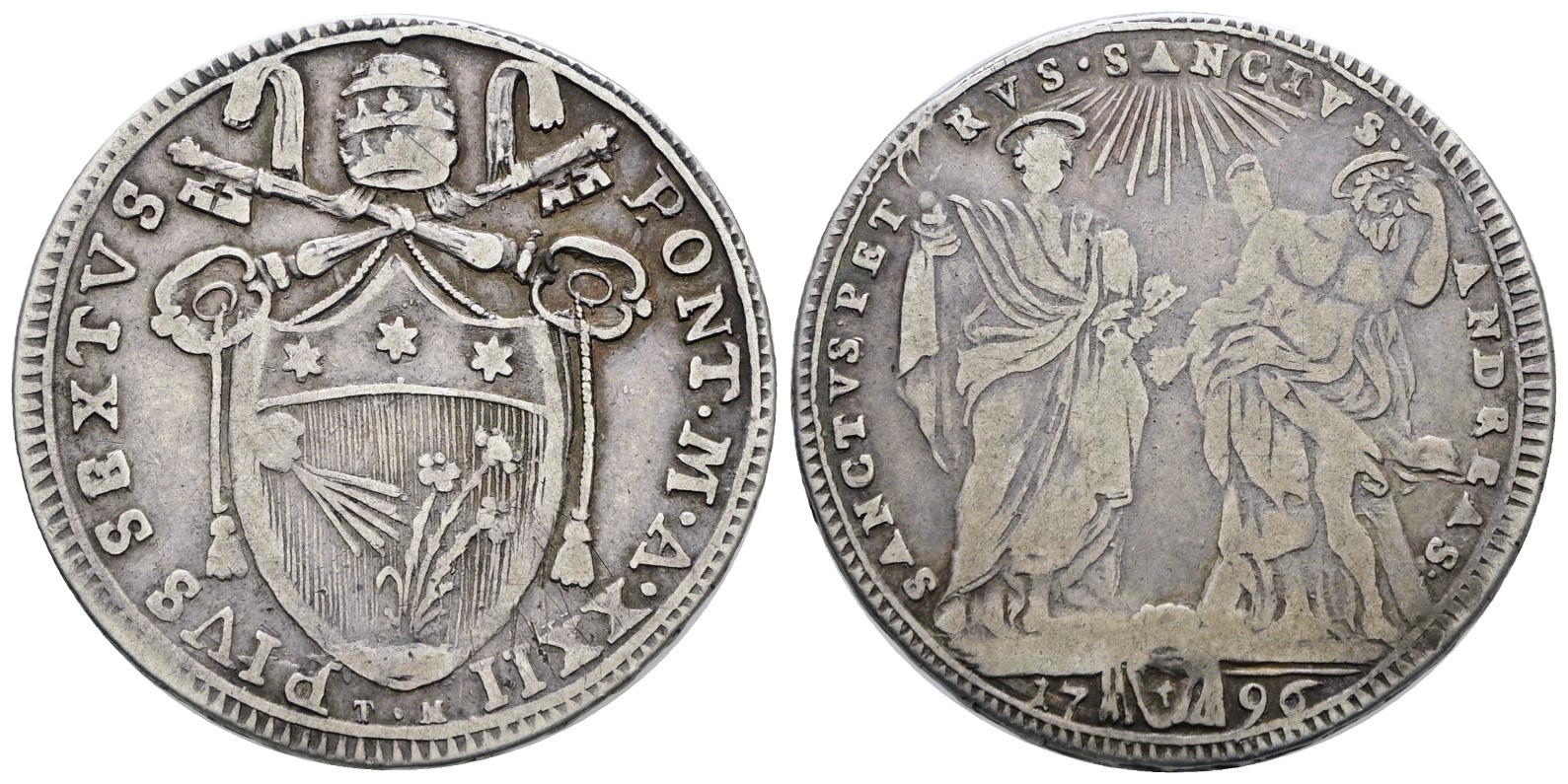 STATO PONTIFICIO. ROMA. Pio VI (1775-1799). Testone 1796. Ag; 7,5gr; Munt.33; MIR 2768/9; BB