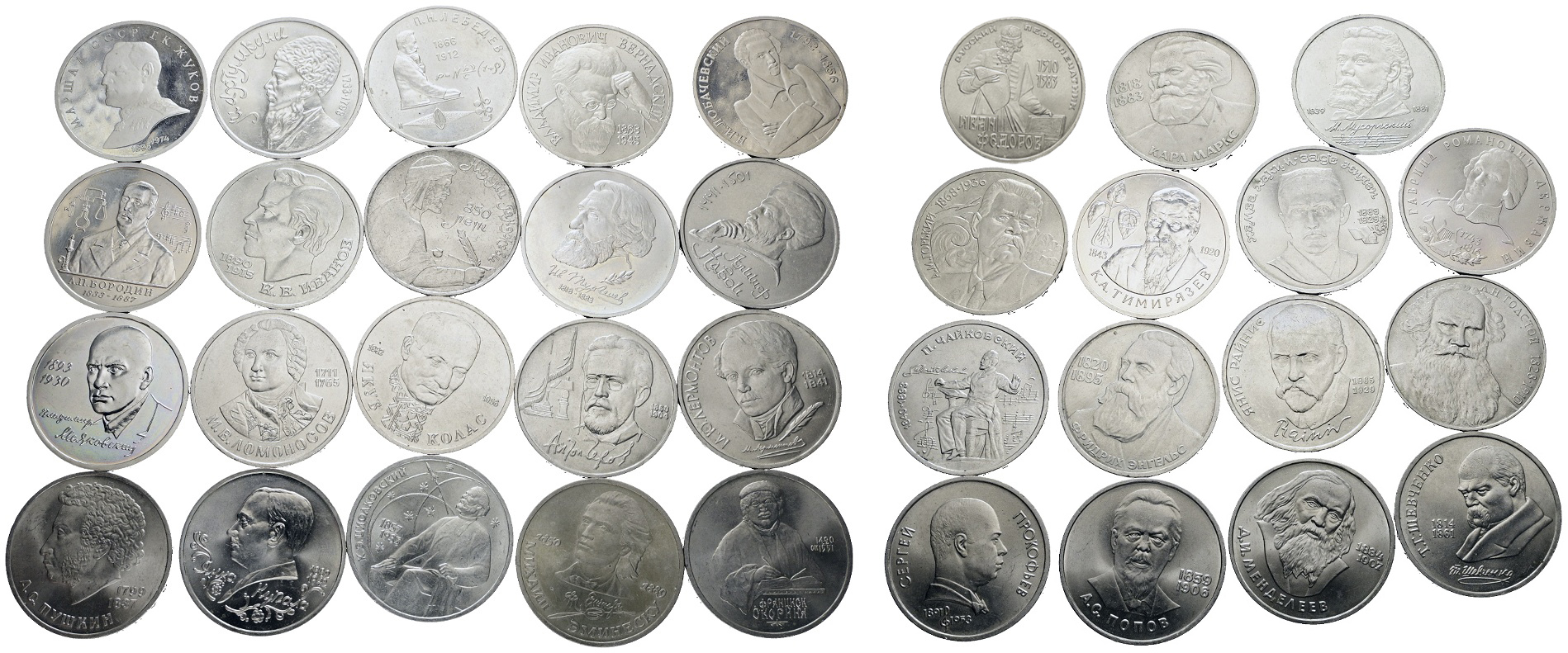 URSS. Lotto di 35 rubli da classificare. Date, metalli e conservazioni varie