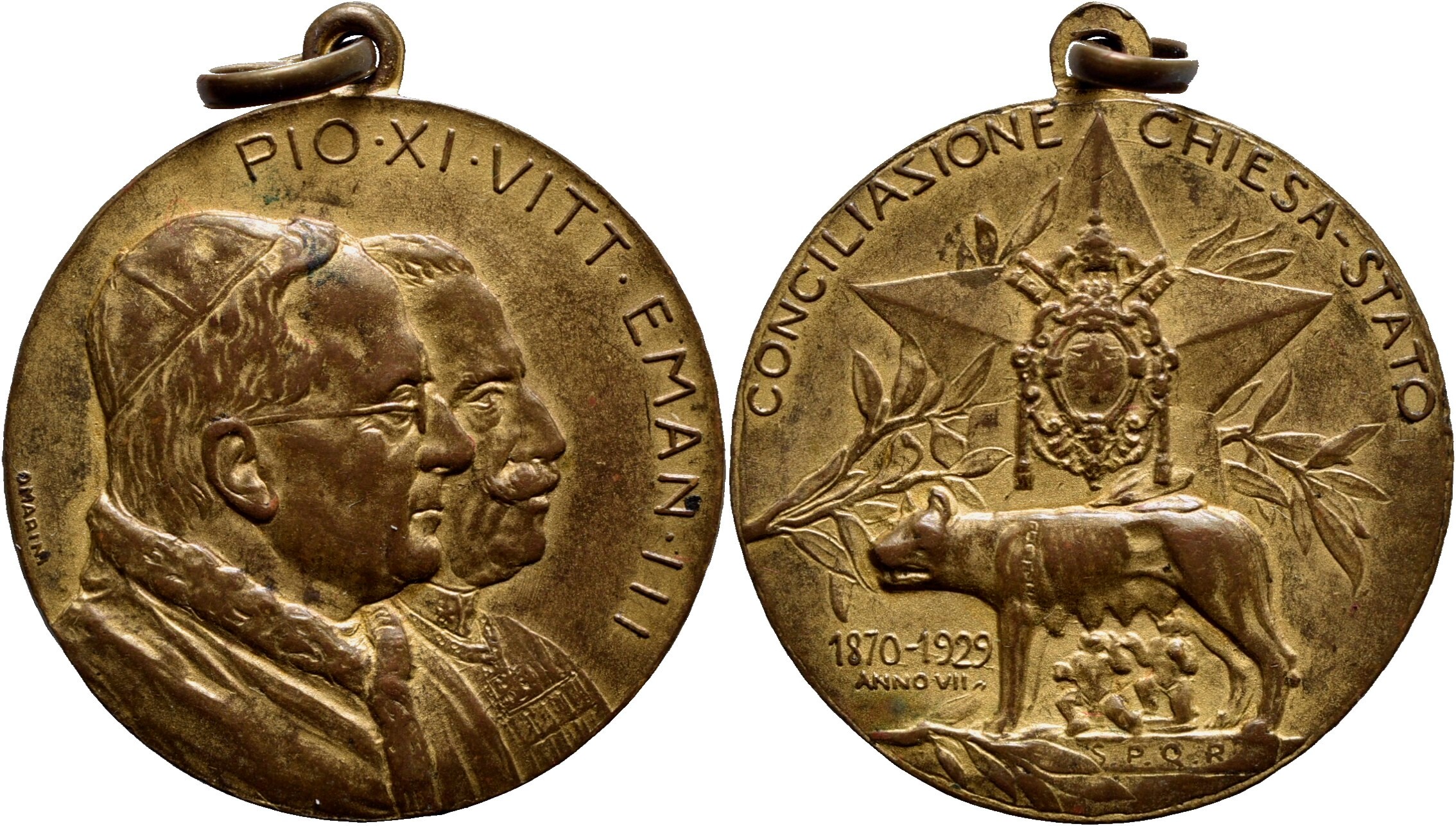 VATICANO. Pio XI (1922-1939) - Medaglia - 1929 A. VII - Concordato Ø: 25 mm. - AE dorato RRR . qFDC