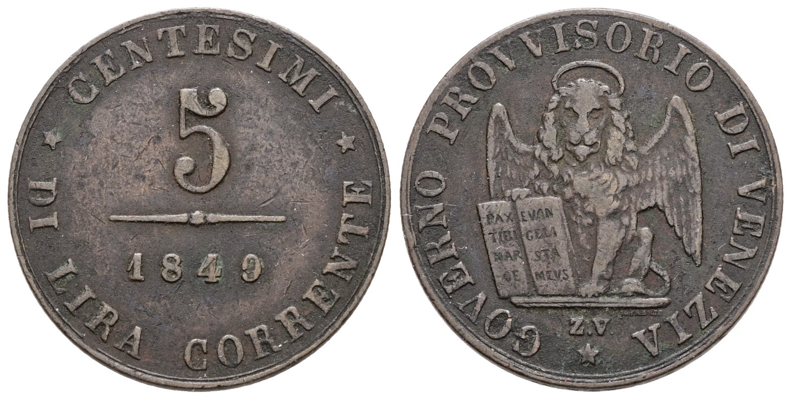 VENEZIA. GOVERNO PROVVISORIO (1848-1849). 5 centesimi 1849. Cu; 5gr; Gig.9; BB+
