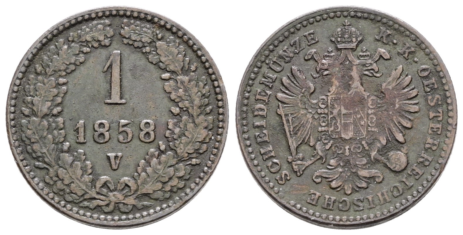 VENEZIA. REGNO LOMBARDO VENETO. Francesco Giuseppe (1848-1866). 1 kreuzer 1858. Cu; 3,33gr; Gig.118; Raro; BB/SPL