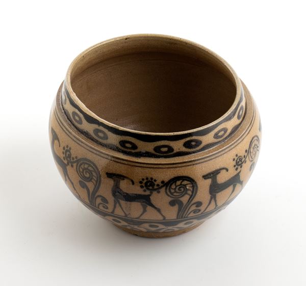 Vasetto con teoria di antilopi in monocromia nera, Anni '20