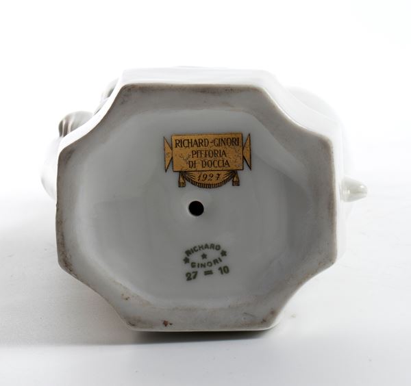 Timbro alla base: Richard Ginori - Pittoria di Doccia, 1927. Opera di Geminiano Cibau che riprende un motivo della "Conversazione classica"