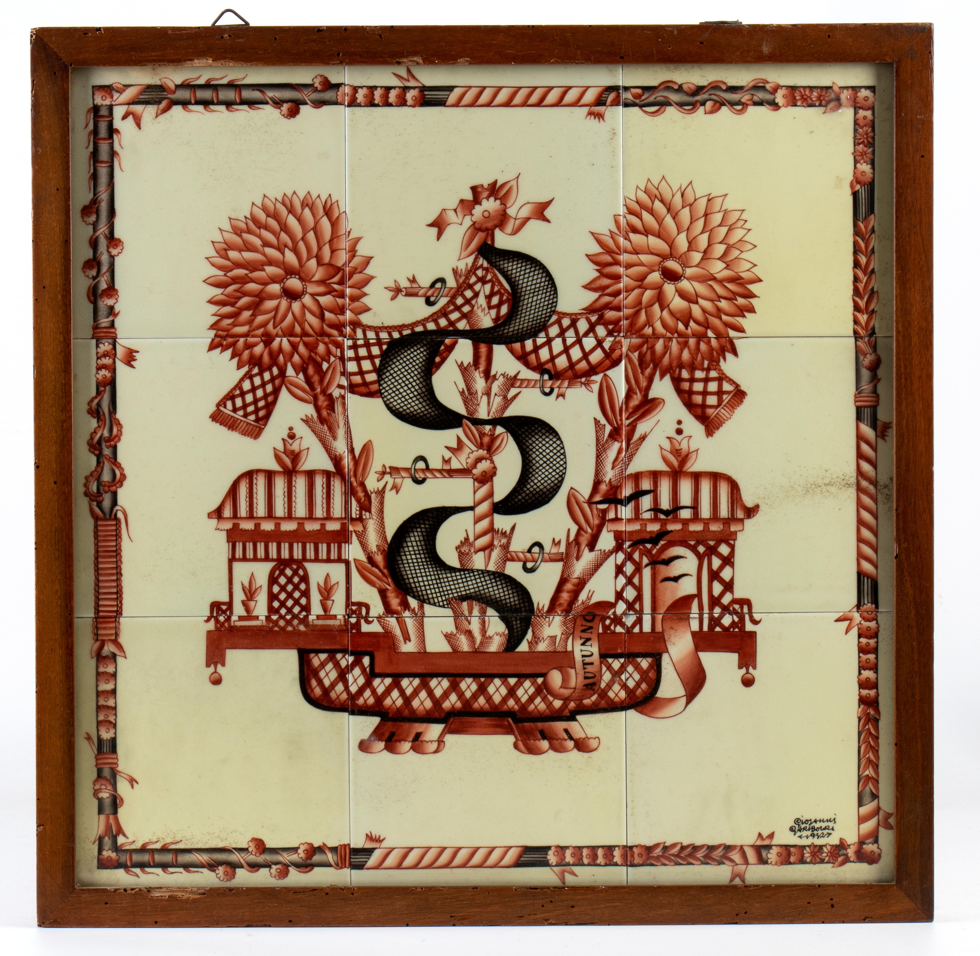 Maiolica composta da nove mattonelle. Firmata e datata in basso a destra: Giovanni Gariboldi, 1932