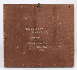 Firmato e datato in basso a sinistra: F. Melis, 69. Al retro: Castellana Durantina, ceramica di Federico Melis, Urbania, 1969