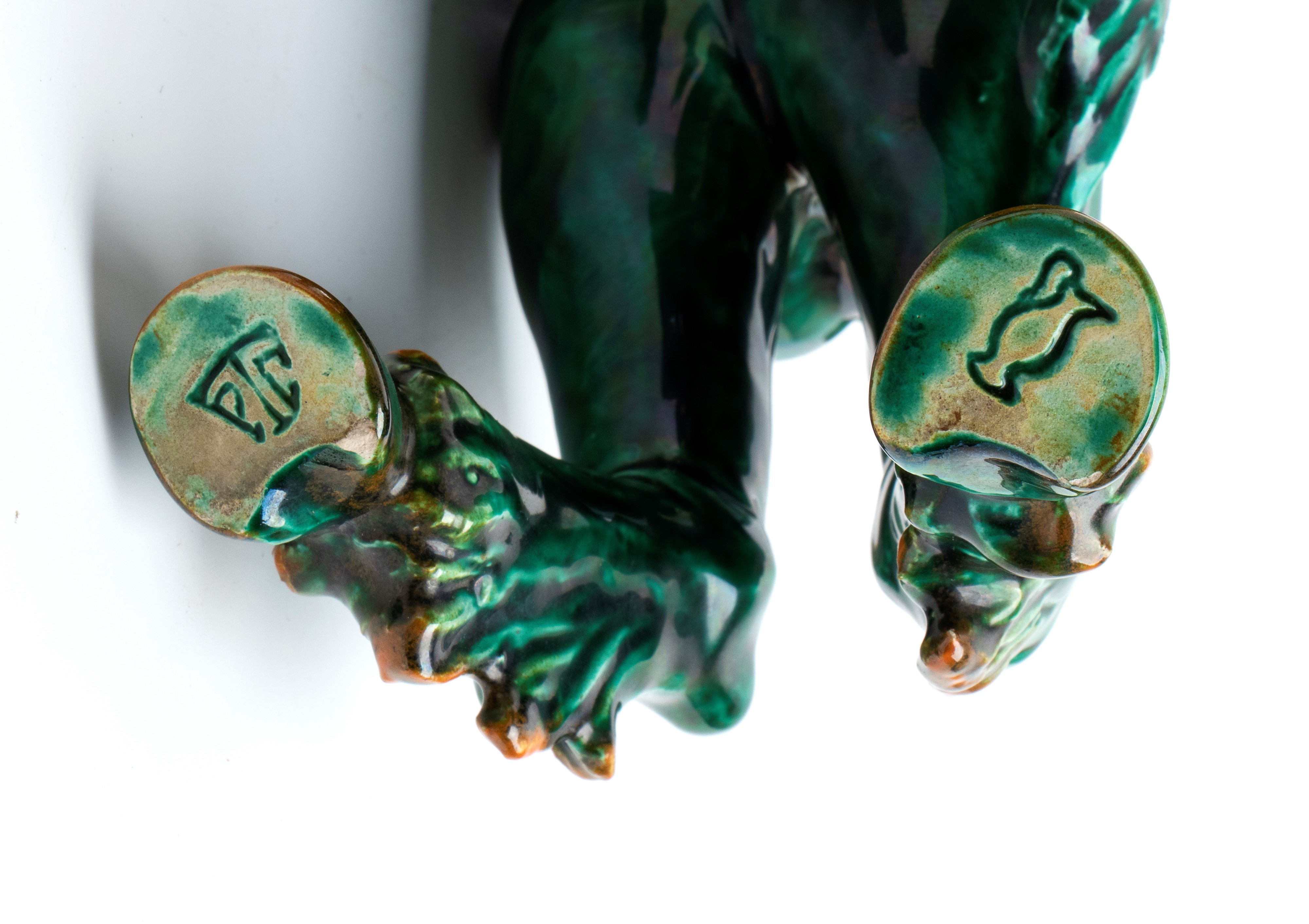Firma e timbro incisi sotto gli zoccoli posteriori: PTC