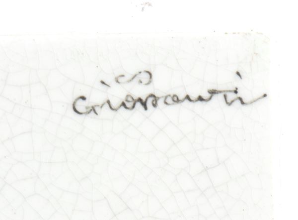 Firmato in alto a destra: Gio Ponti. Al retro timbro: Richard-Ginori, San Cristoforo, Milano