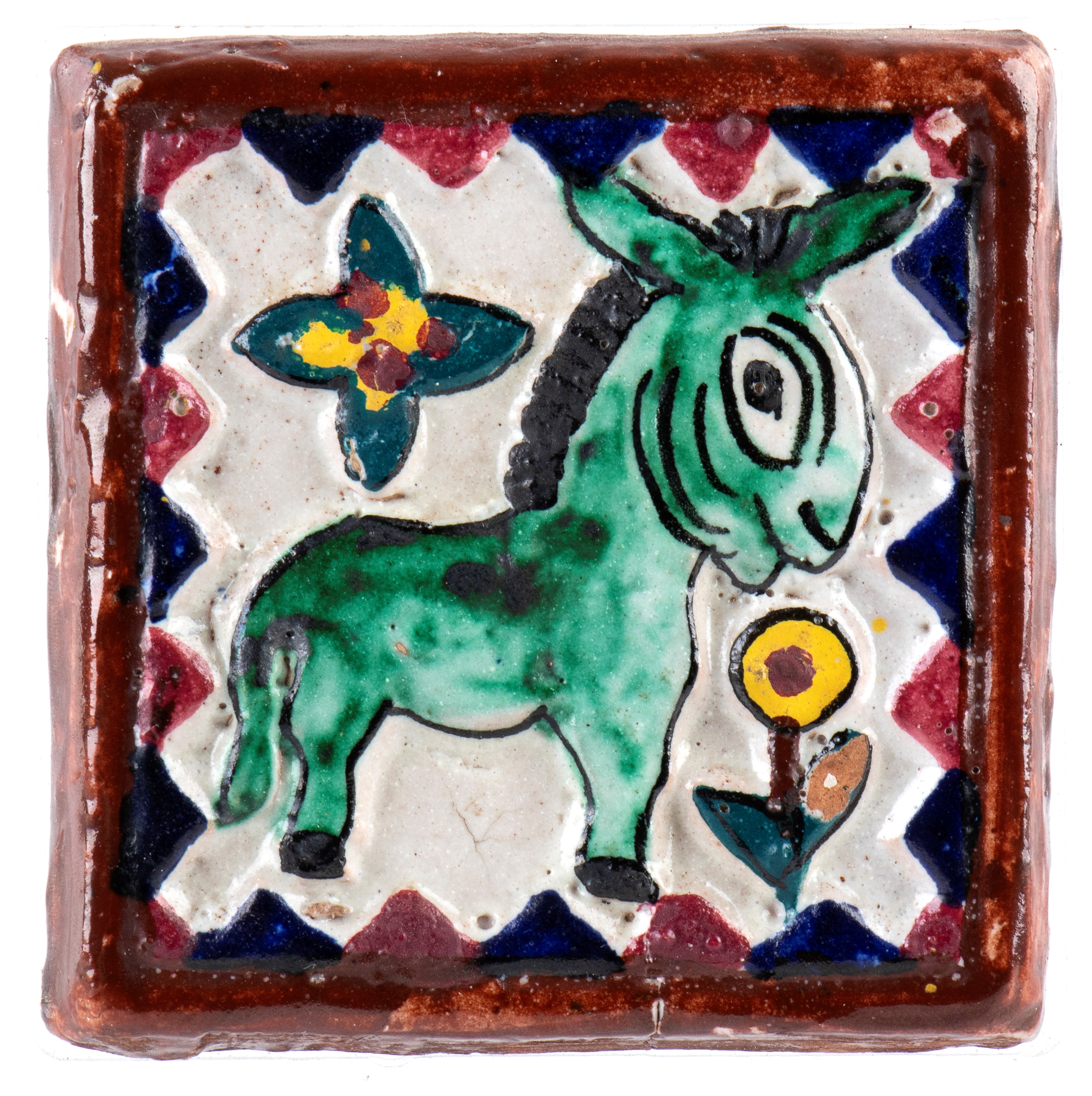 Piccola mattonella con decorazione di asinello