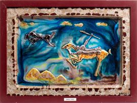 Ceramica decorata in altorilievo e dipinta in policromia. Firmato in basso a destra: Zauli