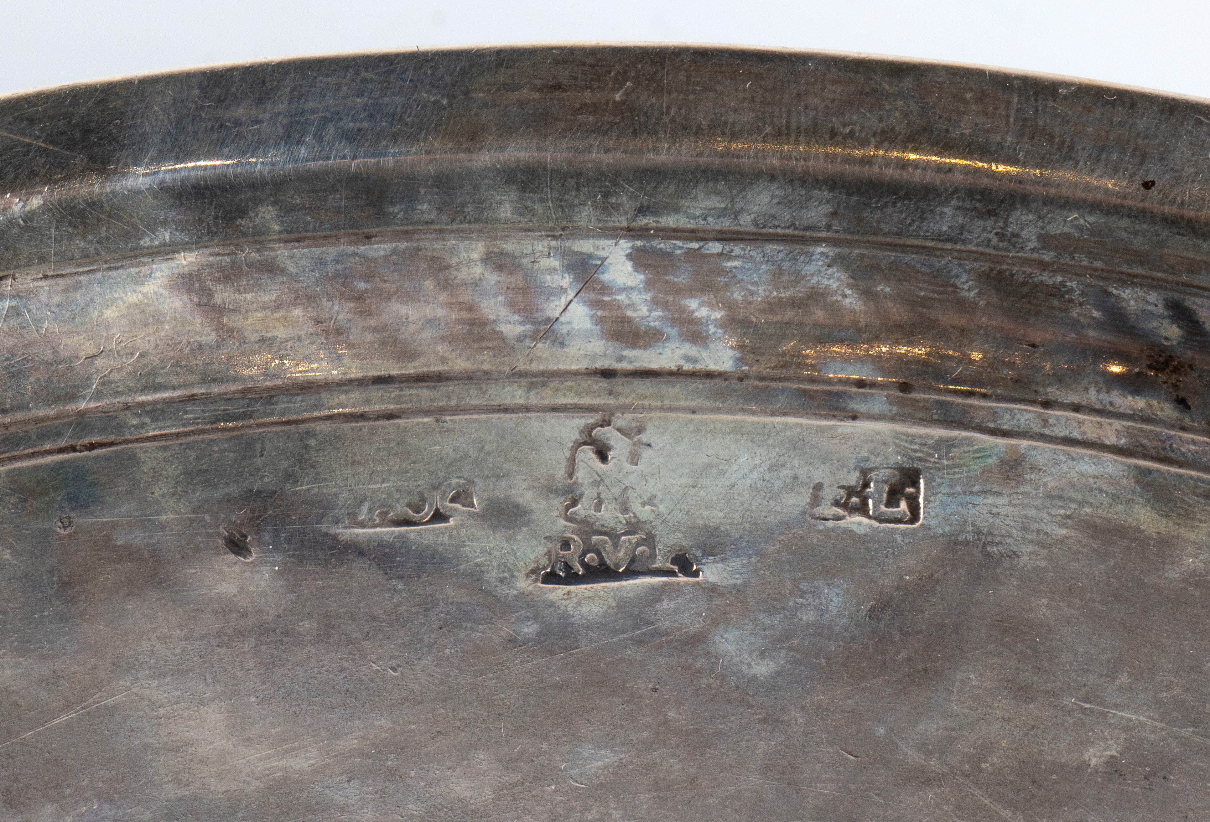 Punzonata con il marchio della "bulla" di Palermo raffigurata da un aquila a volo alto in uso dal 1715 al 1825 e con il marchio di un argentiere F.L. non identificato.