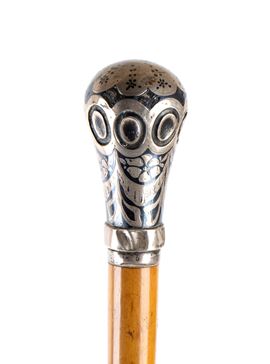 Bastone da passeggio con manico in argento, Inghilterra, XX secolo