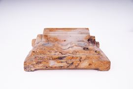 dalla struttura sagomata con profili modanati e voluta laterale. Sulla parte superiore sono ricavate due sedi circolari per l’inchiostro.