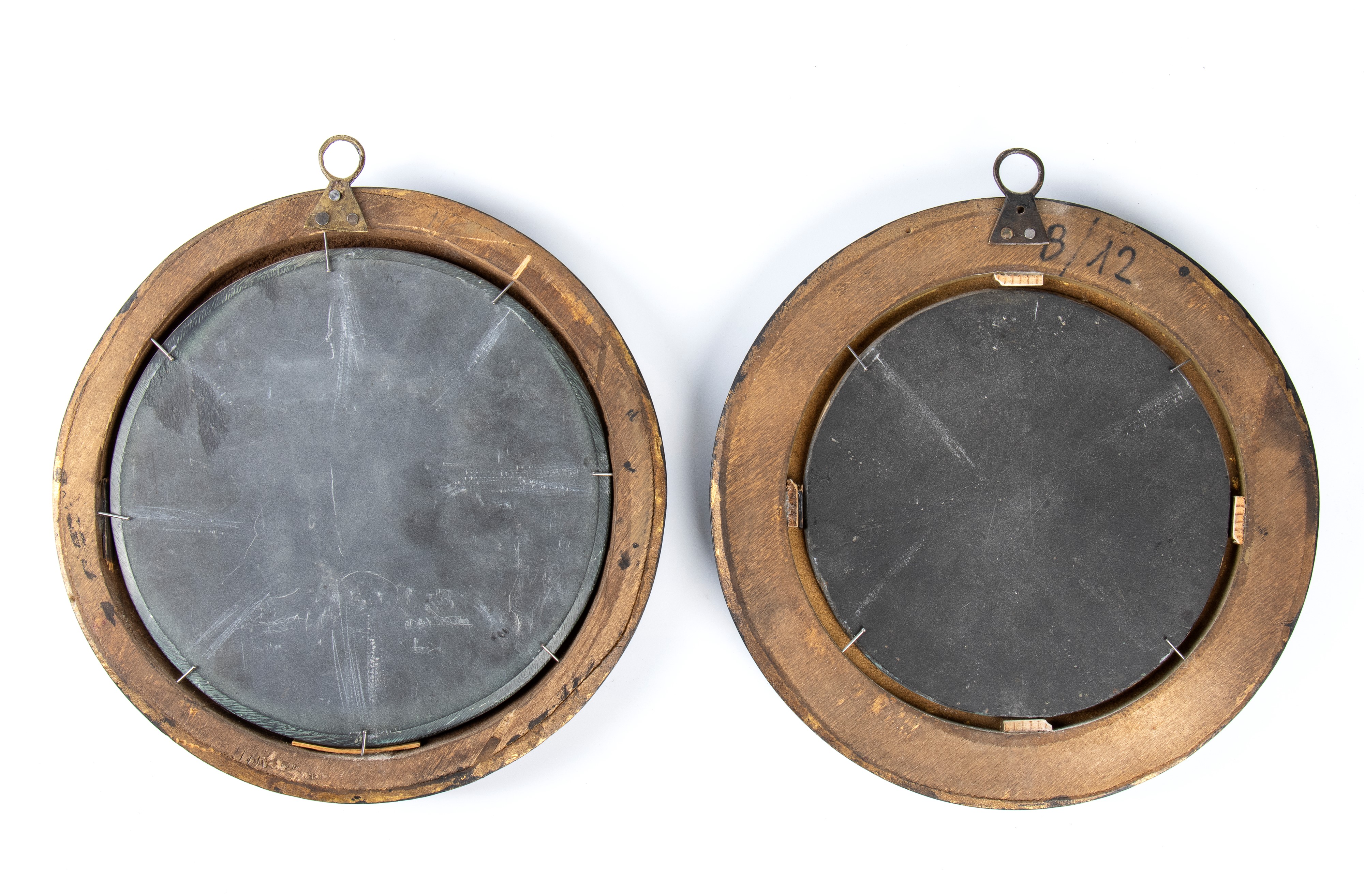 Diametro: 16,5 cm. Diametro cornice: 23,8 cm. Peso totale: 1268 gr